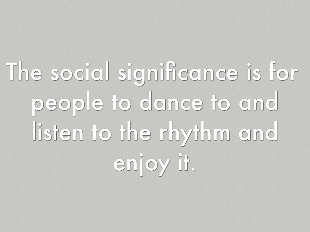 The social significance is for people to dance to and listen to the rhythm and enjoy it.