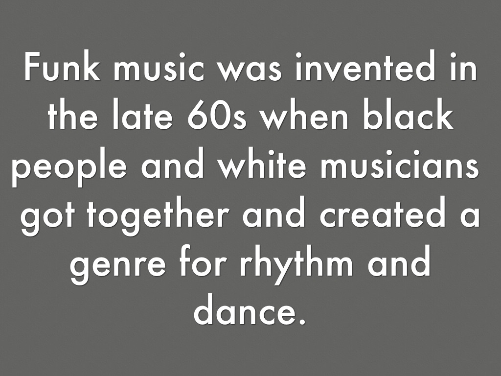 Funk music was invented in the late 60s when black people and white musicians got together and created a genre for rhythm and dance.