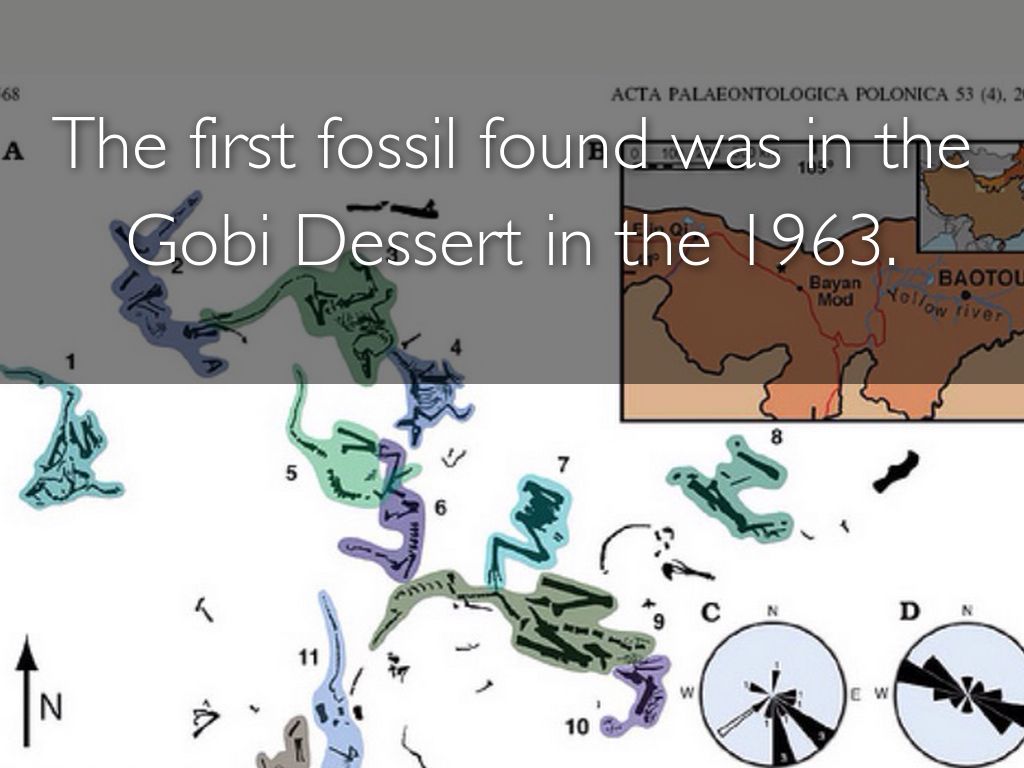 The first fossil found were discovered in early August 1963 by a group of professors in Mongolia.