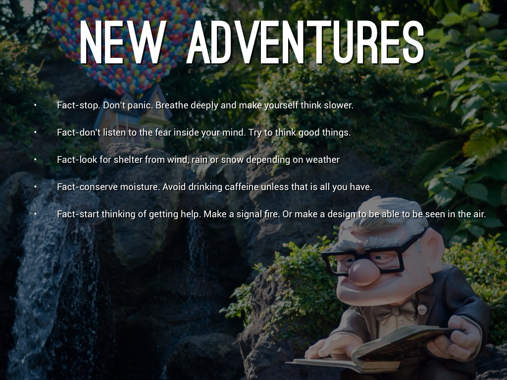 Fact-start thinking of getting help. Make a signal fire. Or make a design to be able to be seen in the air.