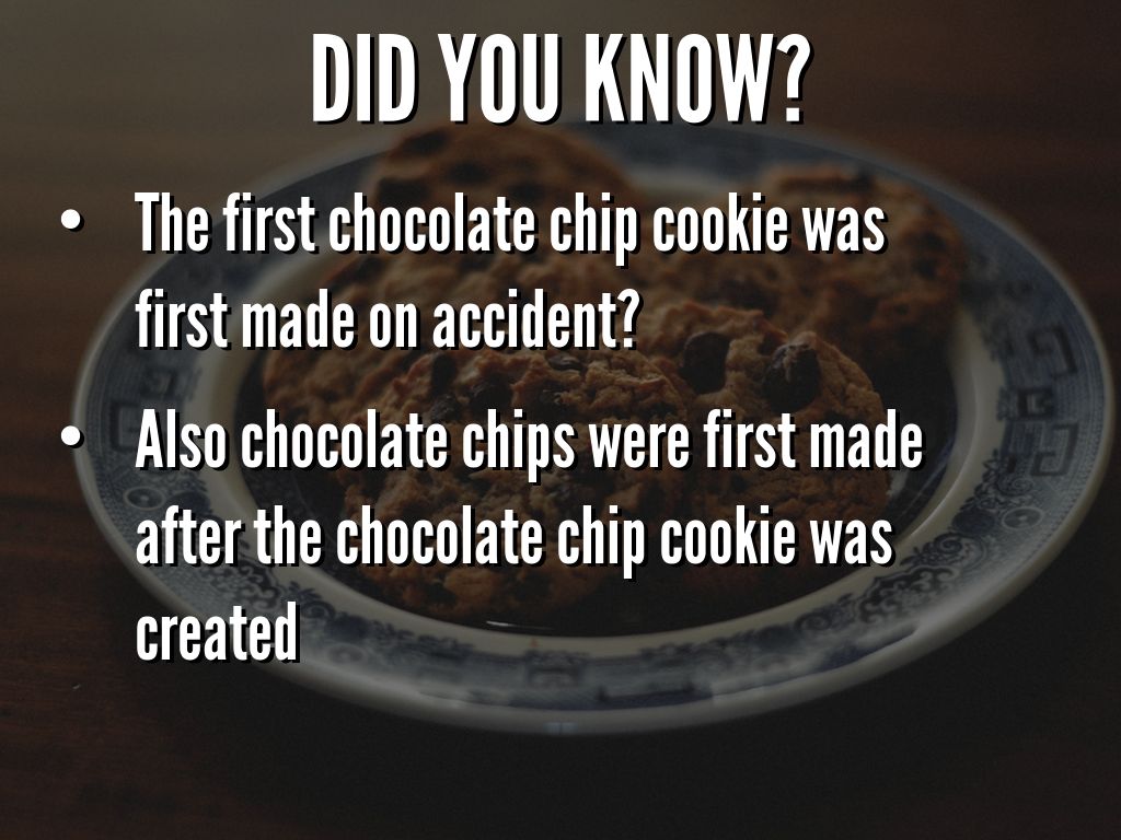 Also chocolate chips were first made after the chocolate chip cookie was created