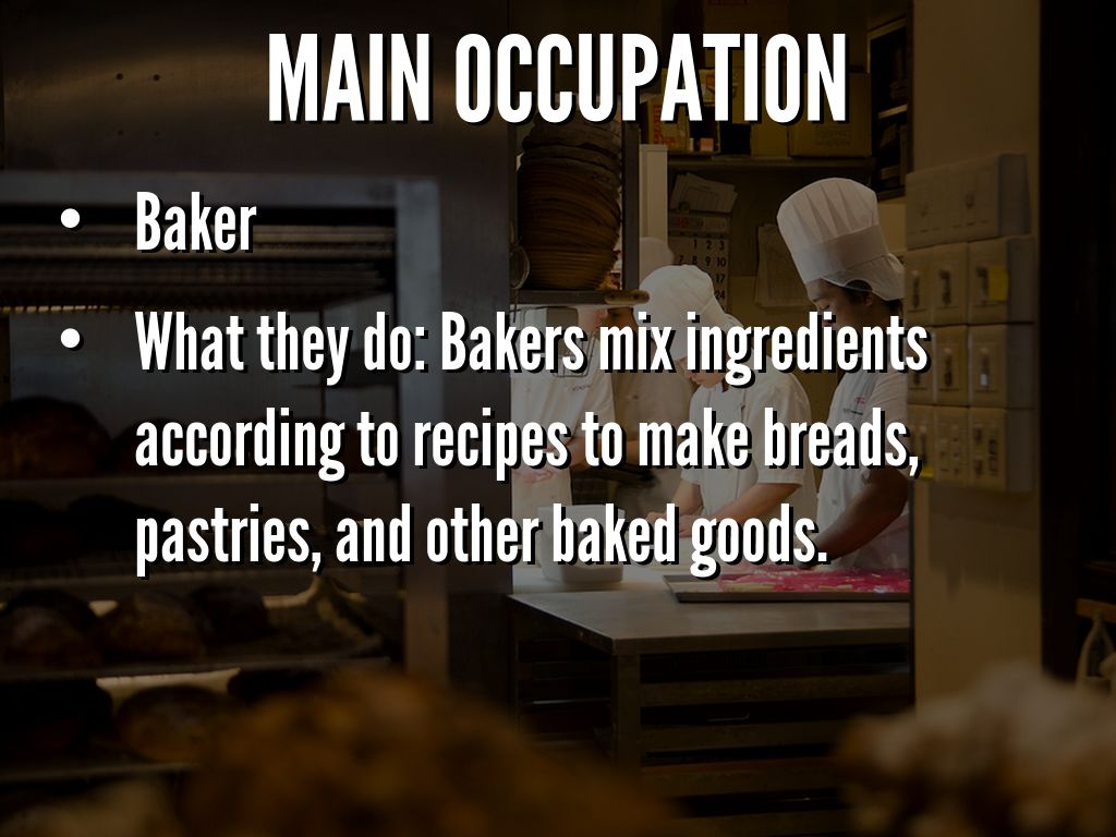 What they do: Bakers mix ingredients according to recipes to make breads, pastries, and other baked goods.
