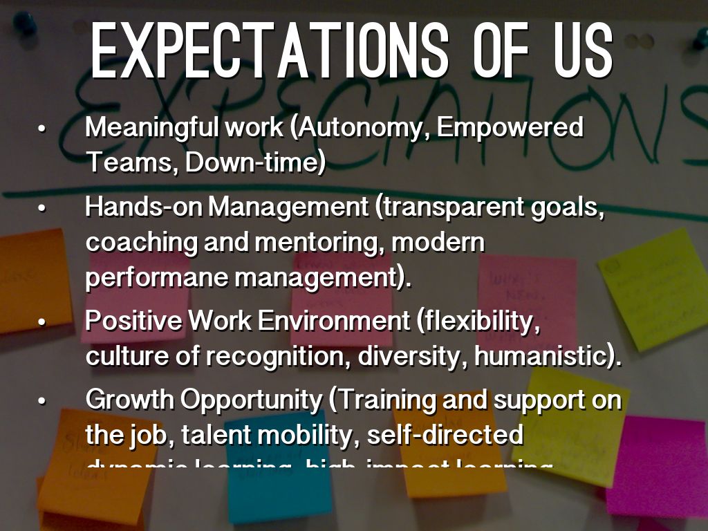 • Meaningful work (Autonomy, Empowered Teams, Down-time)