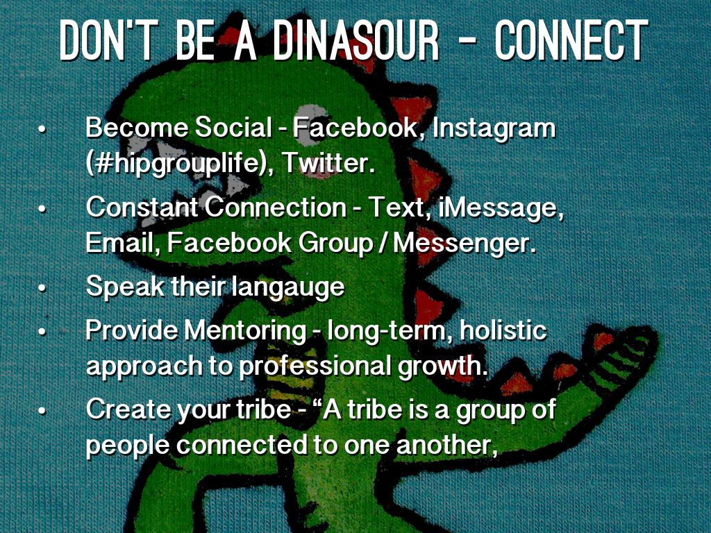 • Become Social - Facebook, Instagram (#hipgrouplife), Twitter.
