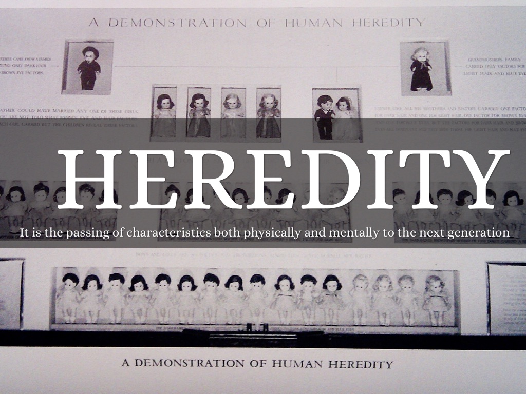 The inheriting of characteristics from an organism; traits are determined by genes.