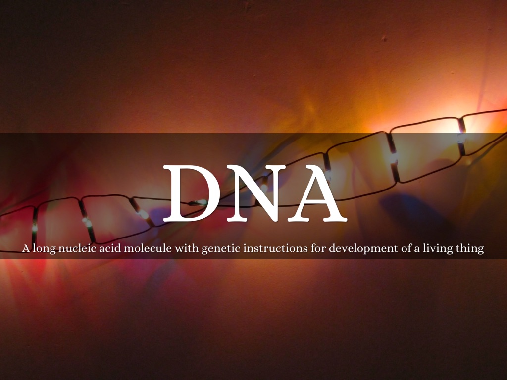 A long nucleic acid molecule with genetic instructions for development of a living thing