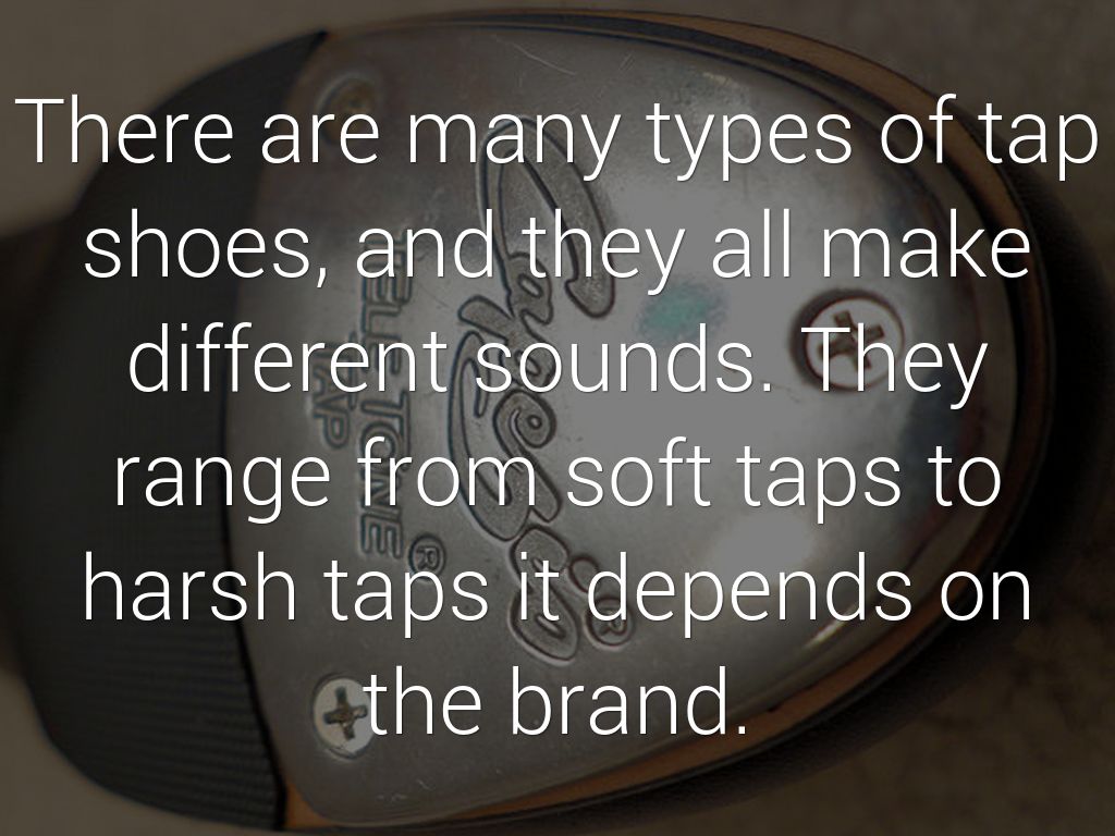 There are many types of tap shoes, and they all make different sounds. They range from soft taps to harsh taps it depends on the brand.
