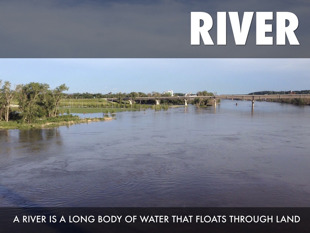 A RIVER IS A LONG BODY OF WATER THAT FLOATS THROUGH LAND