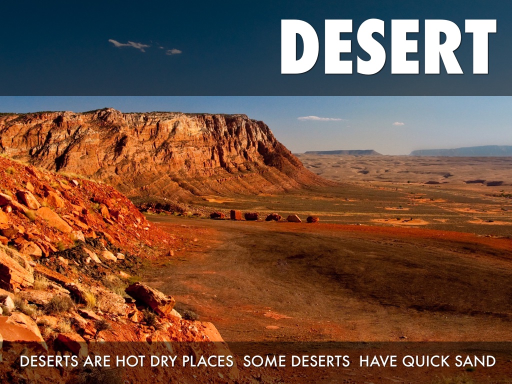 DESERTS ARE HOT DRY PLACES SOME DESERTS HAVE QUICK SAND