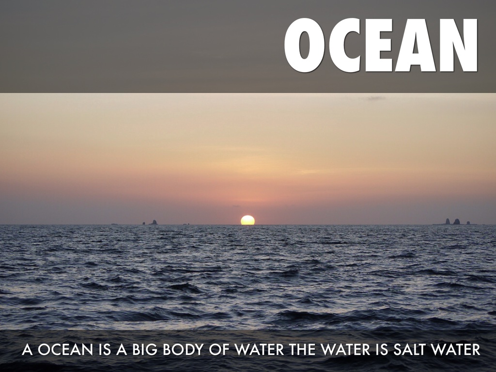 A OCEAN IS A BIG BODY OF WATER THE WATER IS SALT WATER