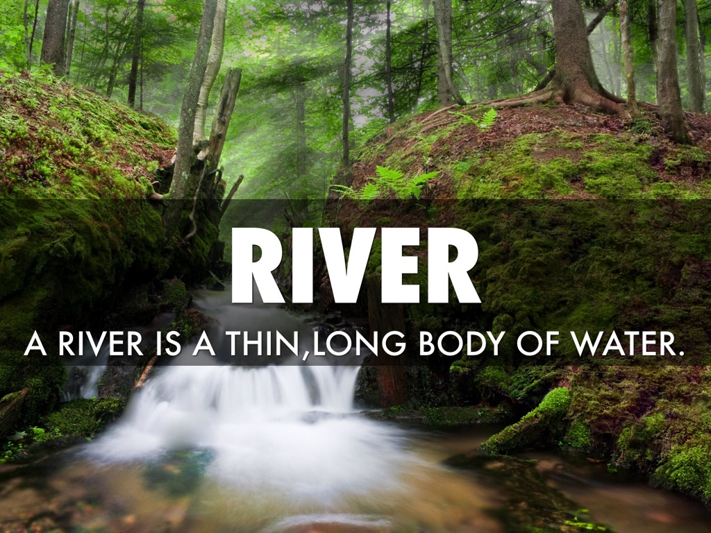 A RIVER IS A THIN,LONG BODY OF WATER.