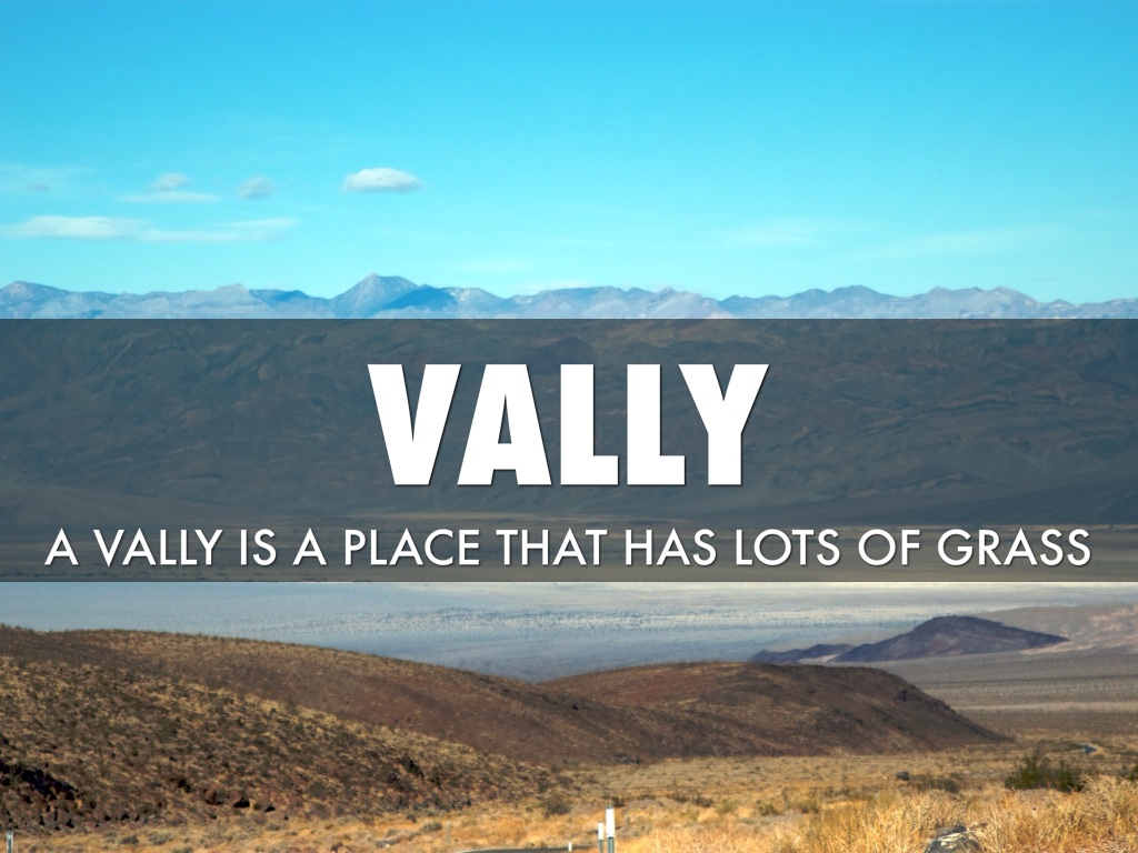 A VALLY IS A PLACE THAT HAS LOTS OF GRASS