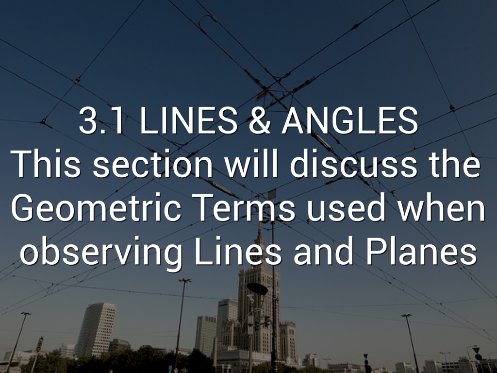 This section will discuss the Geometric Terms used when observing Lines and Planes