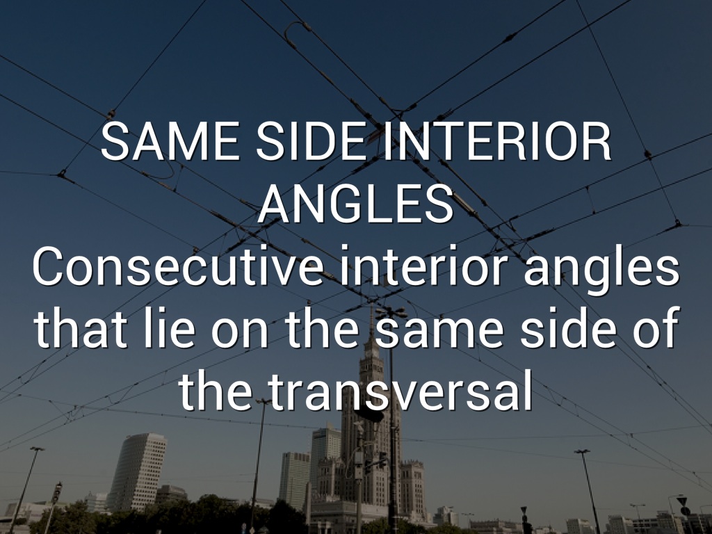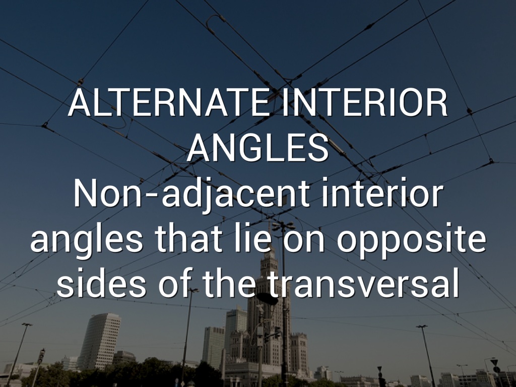 Non-adjacent interior angles that lie on opposite sides of the transversal