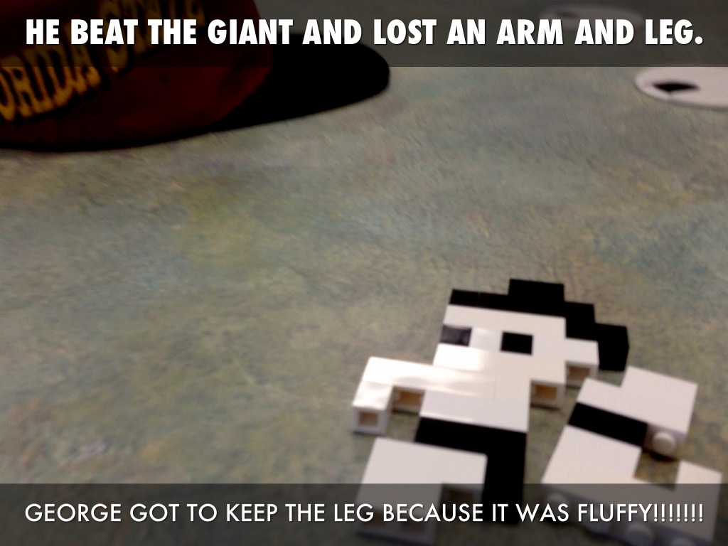 HE BEAT THE GIANT AND LOST AN ARM AND LEG.