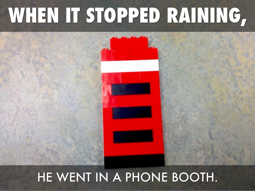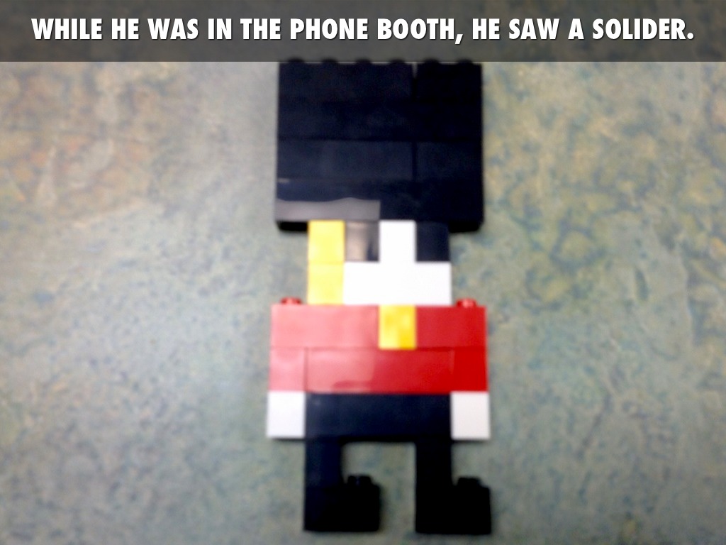 WHILE HE WAS IN THE PHONE BOOTH, HE SAW A SOLIDER.