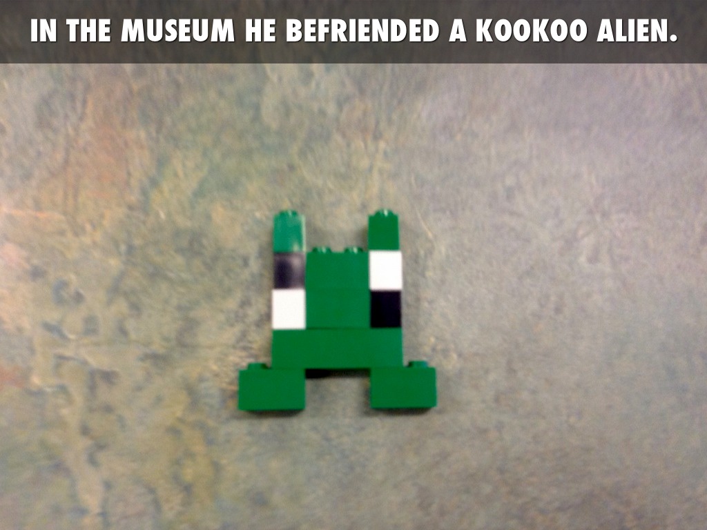 IN THE MUSEUM HE BEFRIENDED A KOOKOO ALIEN.