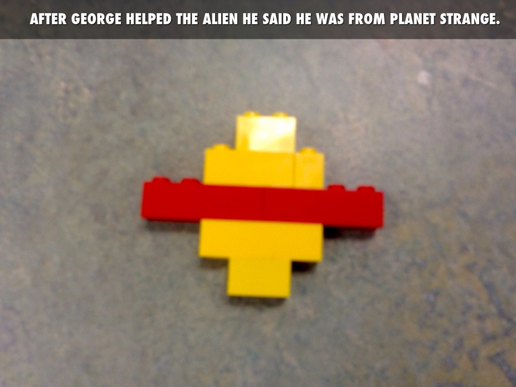 AFTER GEORGE Helped tHE aLIEN HE SAID HE WAS FROM PLANET STRANGE.