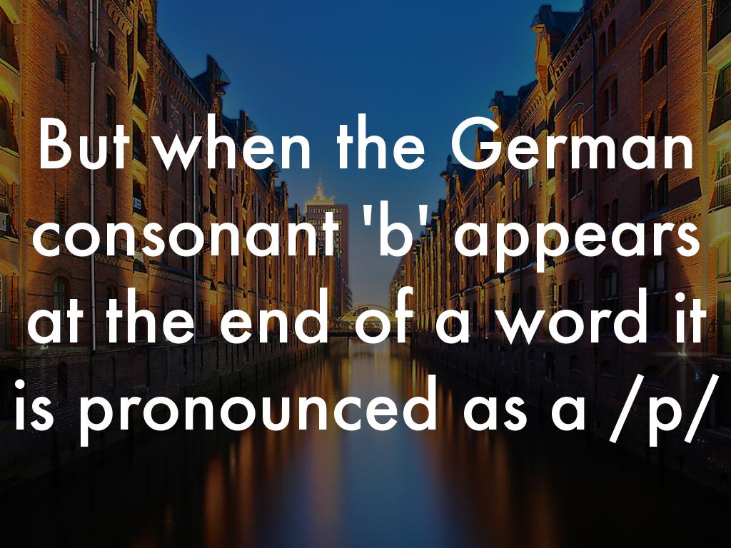 But when the German consonant 'b' appears at the end of a word it is pronounced as a /p/