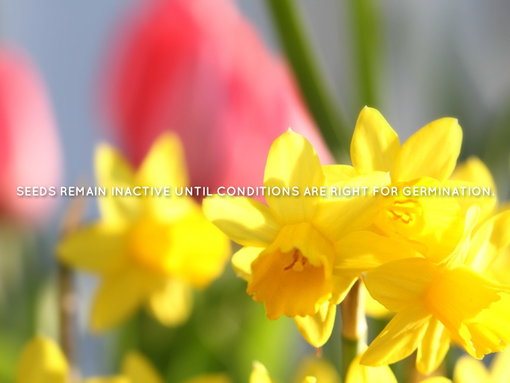 SEEDS REMAIN INACTIVE UNTIL CONDITIONS ARE RIGHT FOR GERMINATION.