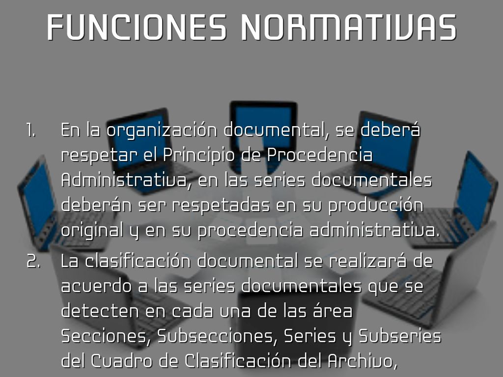 • En la organización documental, se deberá respetar el Principio de Procedencia Administrativa, en las series documentales deberán ser respetadas en su producción original y en su procedencia administrativa.
