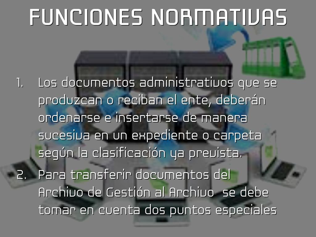• Los documentos administrativos que se produzcan o reciban el ente, deberán ordenarse e insertarse de manera sucesiva en un expediente o carpeta según la clasificación ya prevista.