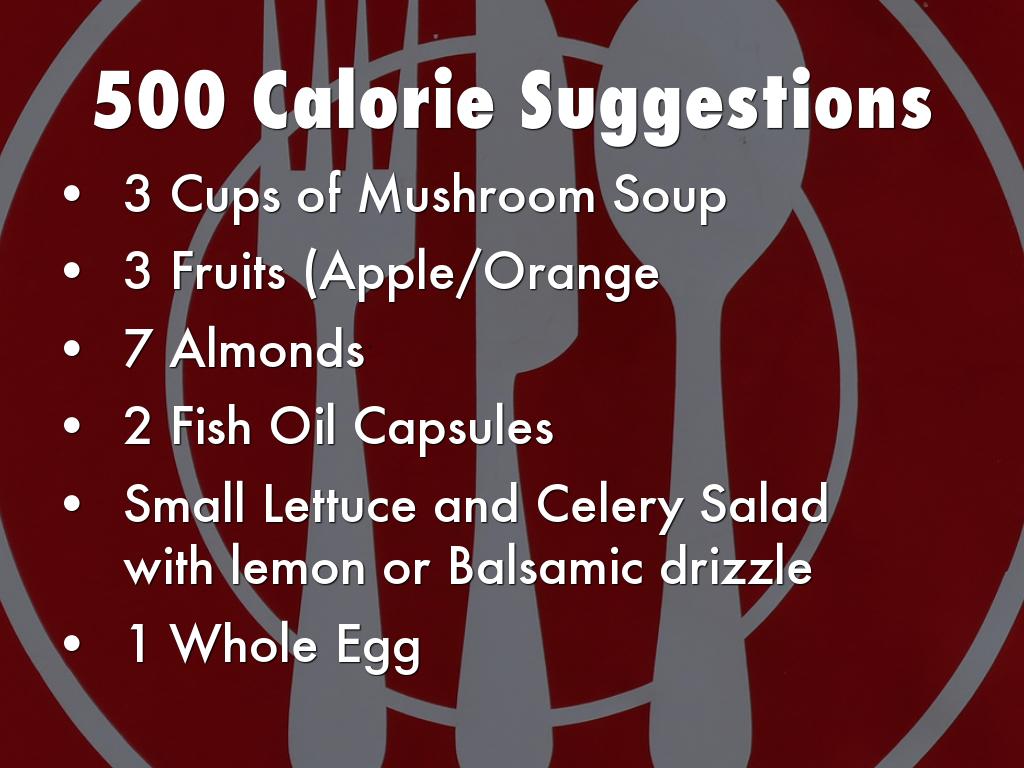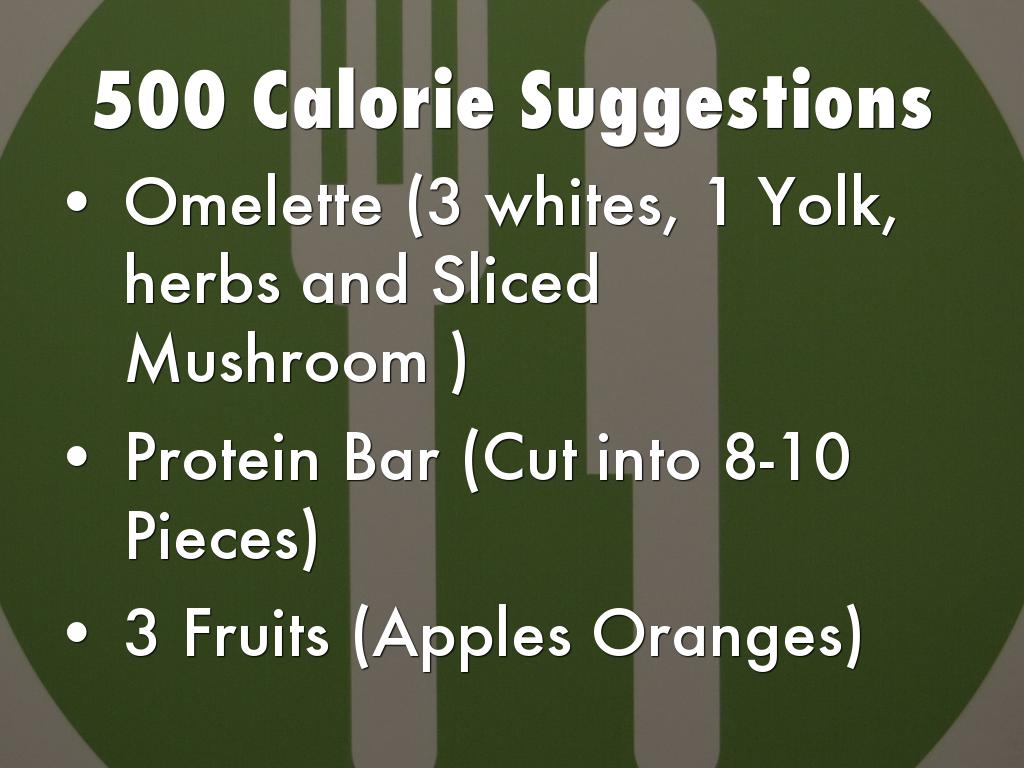 There is no way one can simply just guess what 500 calories might look like and too little will leave you hungry and weak and too many will simply not produce results.