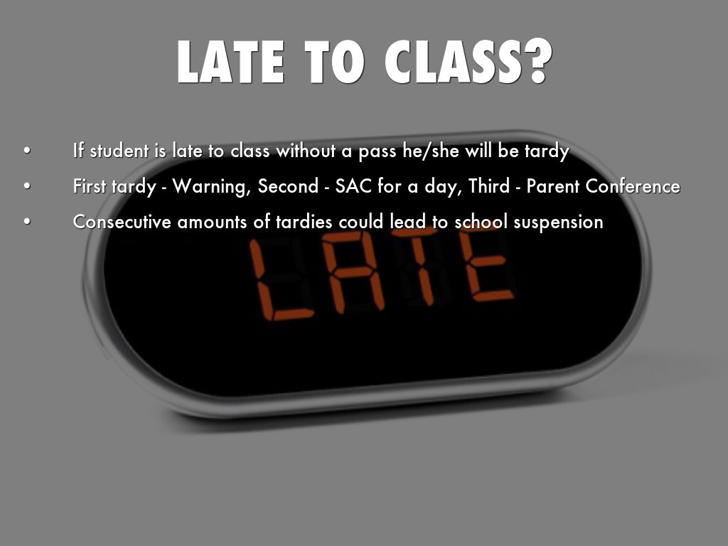 First tardy - Warning, Second - SAC for a day, Third - Parent Conference