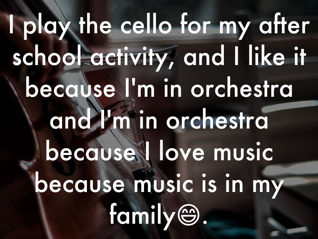 I play the cello for my after school activity, and I like it because I'm in orchestra and I'm in orchestra because I love music because music is in my family😄.