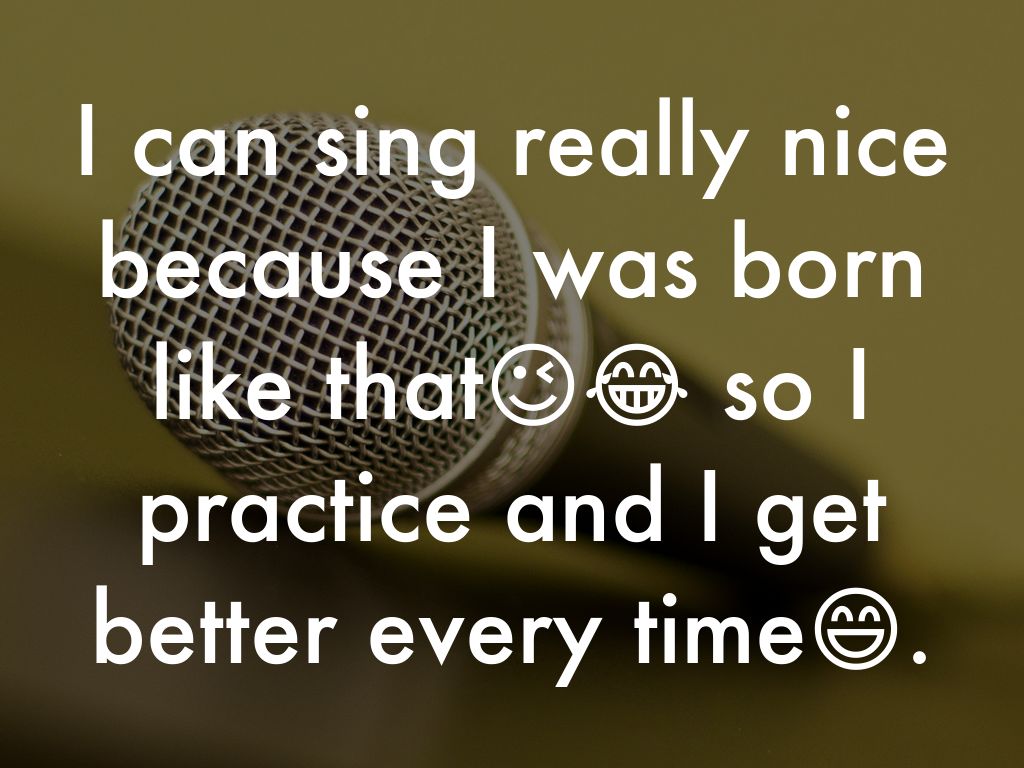 I can sing really nice because I was born like that😉😂 so I practice and I get better every time😄.