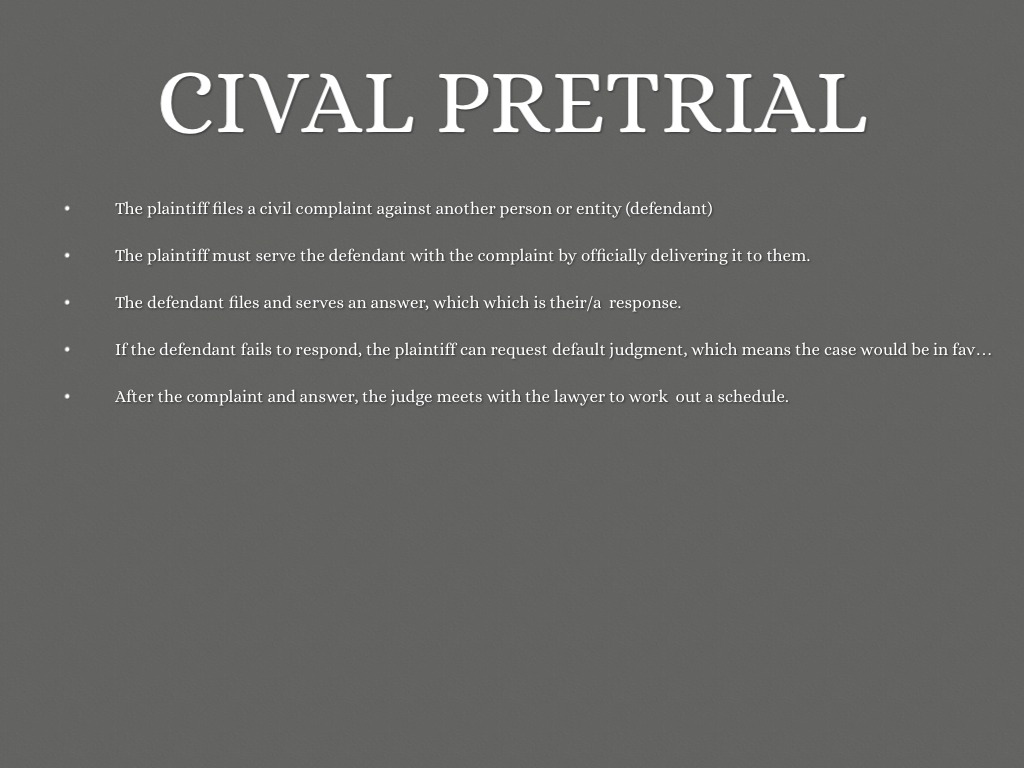 After the complaint and answer, the judge meets with the lawyer to work out a schedule.