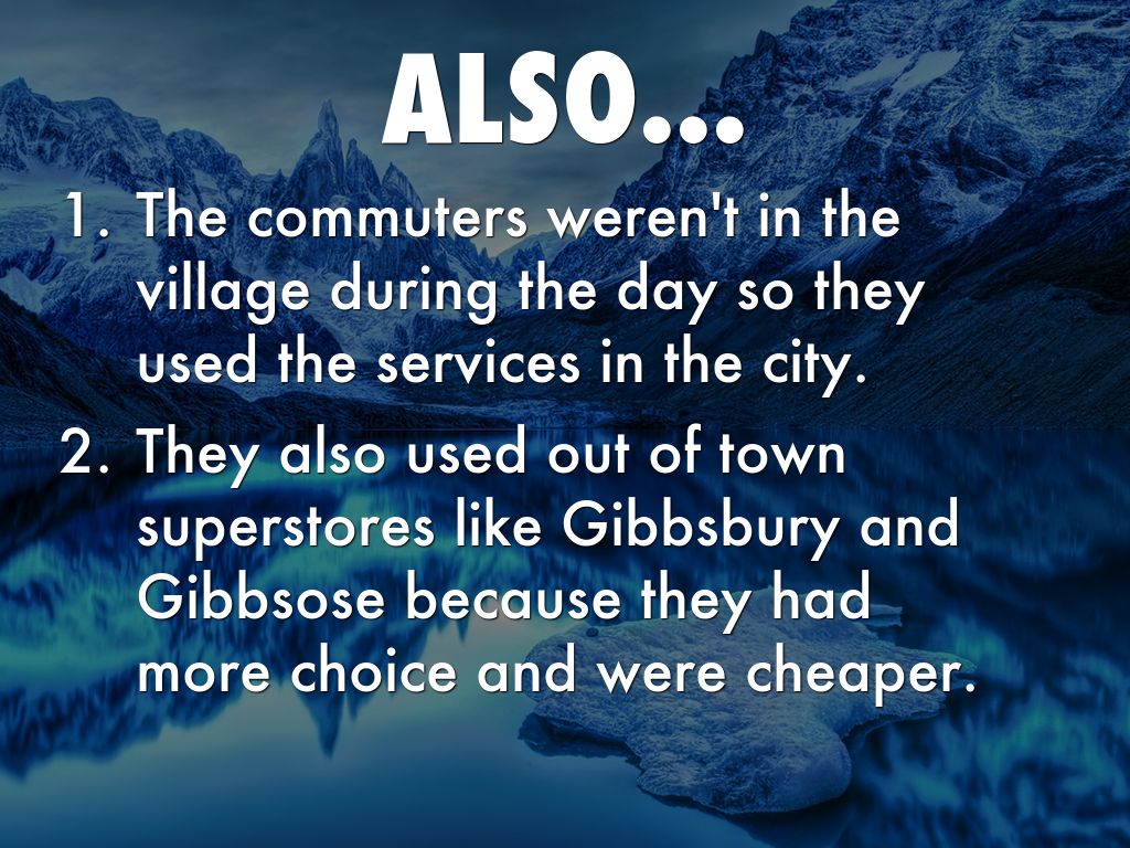 They also used out of town superstores like Gibbsbury and Gibbsose because they had more choice and were cheaper.