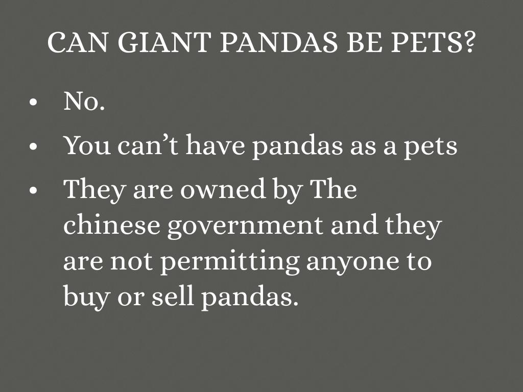 • You can’t have pandas as a pets