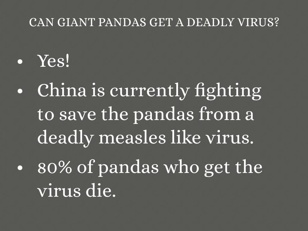• 80% of pandas who get the virus die.