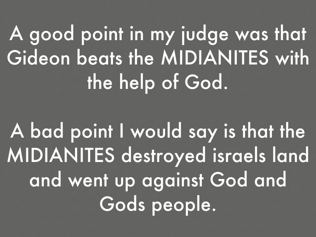 A good point in my judge was that Gideon beats the MIDIANITES with the help of God.