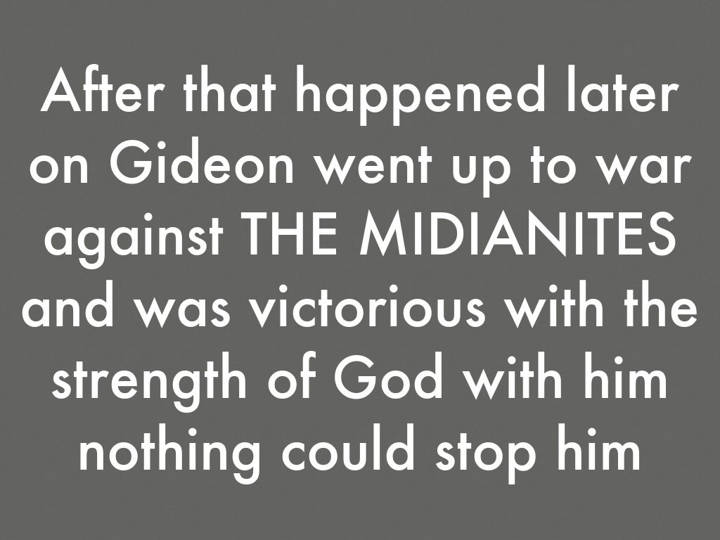 After that happened later on Gideon went up to war against THE MIDIANITES and was victorious with the strength of God with him nothing could stop him