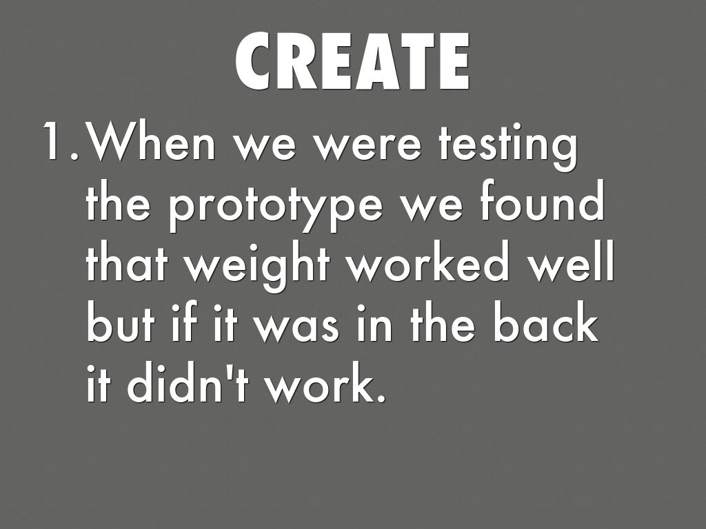 When we were testing the prototype we found that weight worked well but if it was in the back it didn't work.