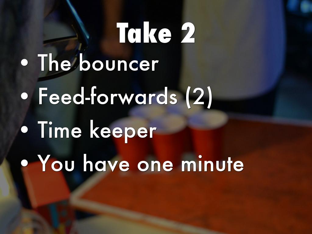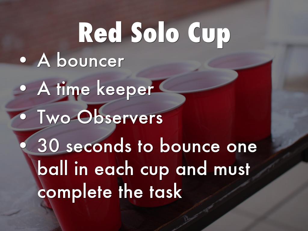 - 30 seconds to bounce one ball in each cup and must complete the task