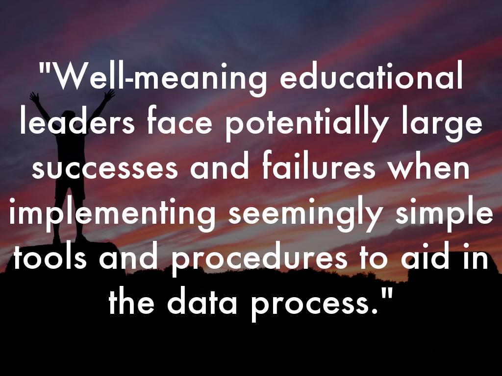 "Well-meaning educational leaders face potentially large successes and failures when implementing seemingly simple tools and procedures to aid in the data process."