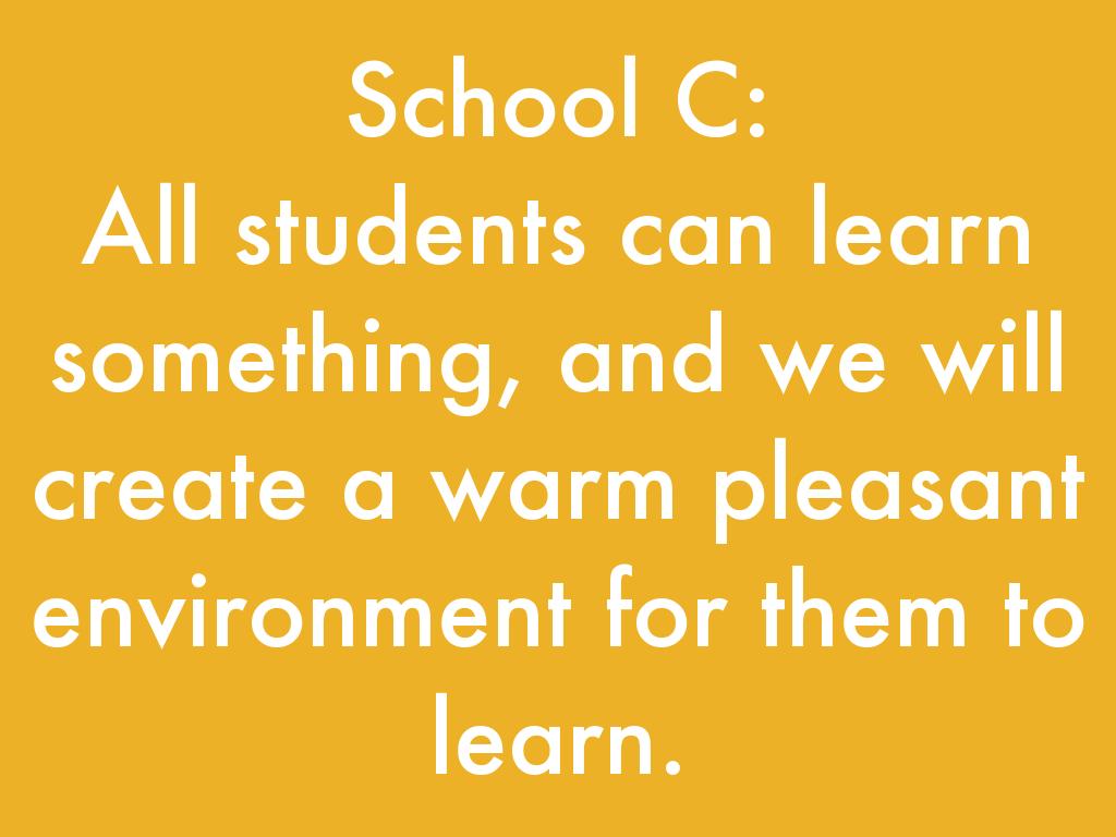 All students can learn something, and we will create a warm pleasant environment for them to learn.