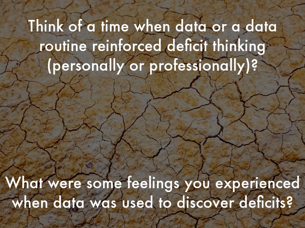Think of a time when data or a data routine reinforced deficit thinking (personally or professionally)?