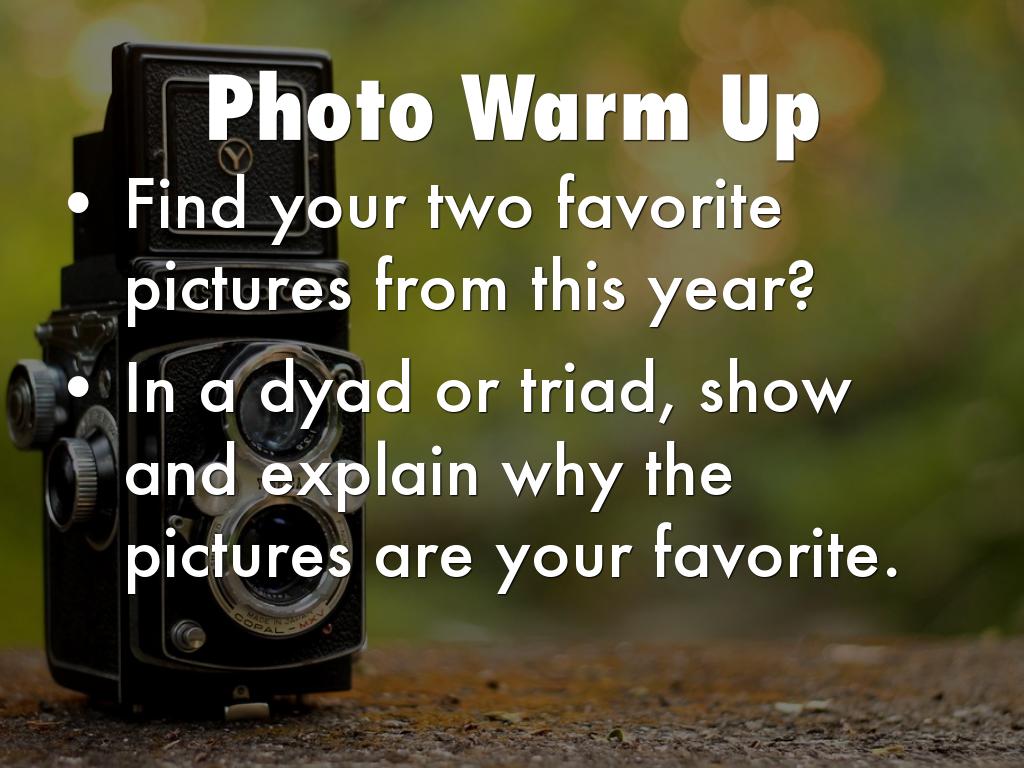 - In a dyad or triad, show and explain why the pictures are your favorite.