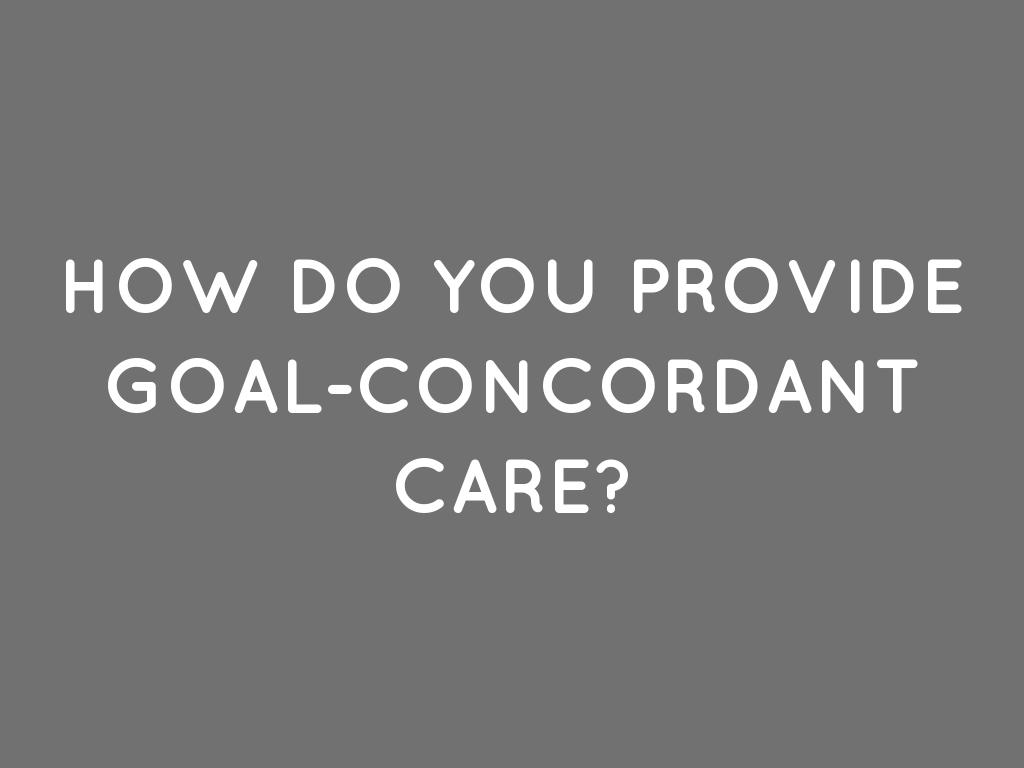HOW DO YOU PROVIDE GOAL-CONCORDANT CARE?