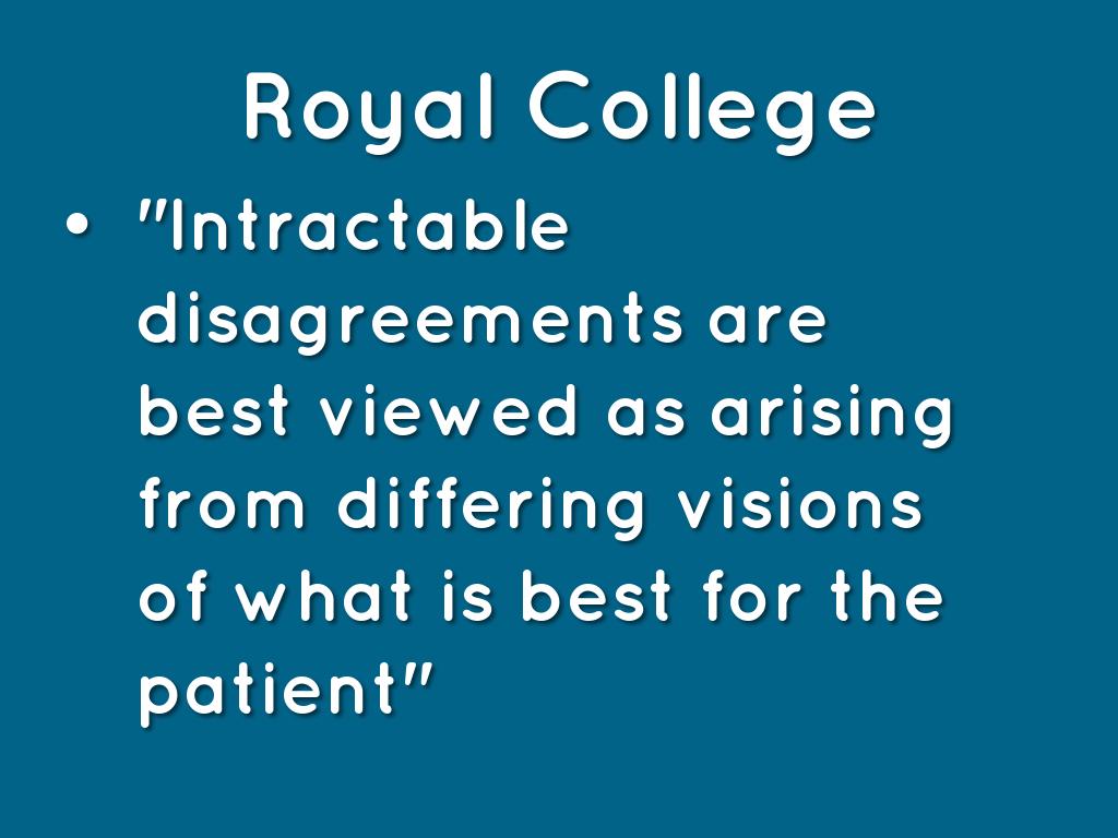 - "Intractable disagreements are best viewed as arising from differing visions of what is best for the patient"