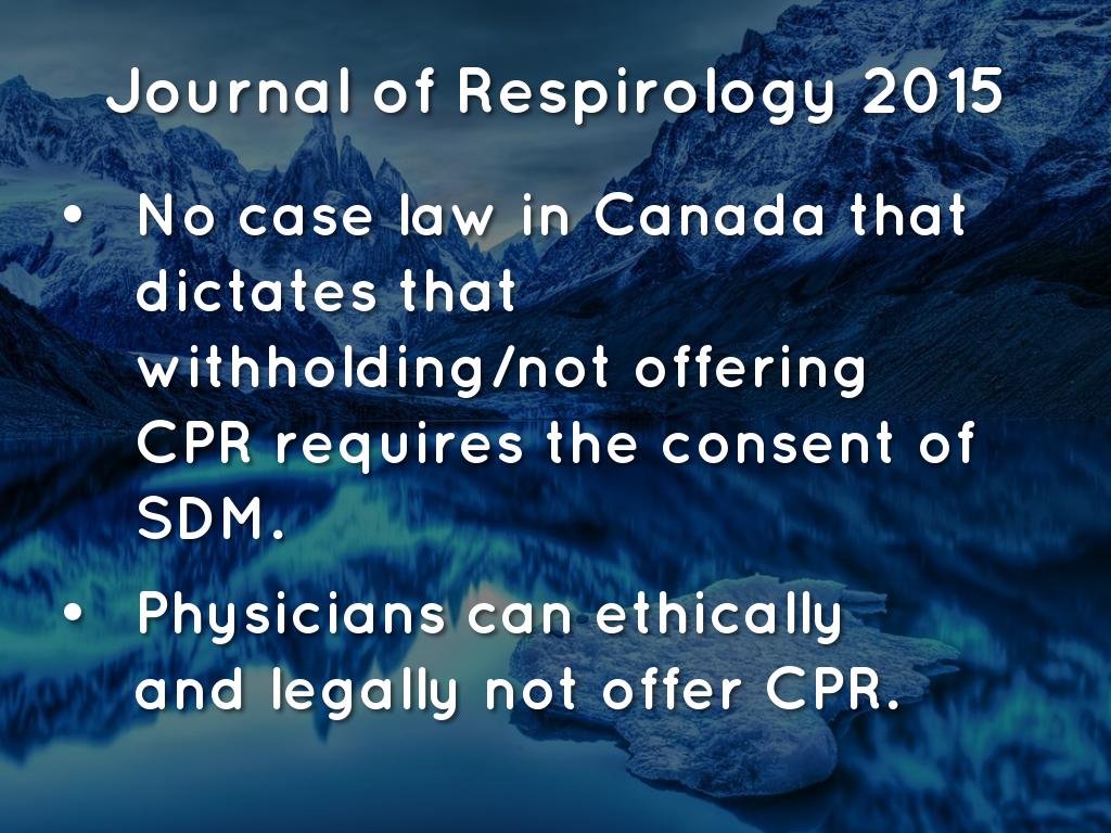 - No case law in Canada that dictates that withholding/not offering CPR requires the consent of SDM.