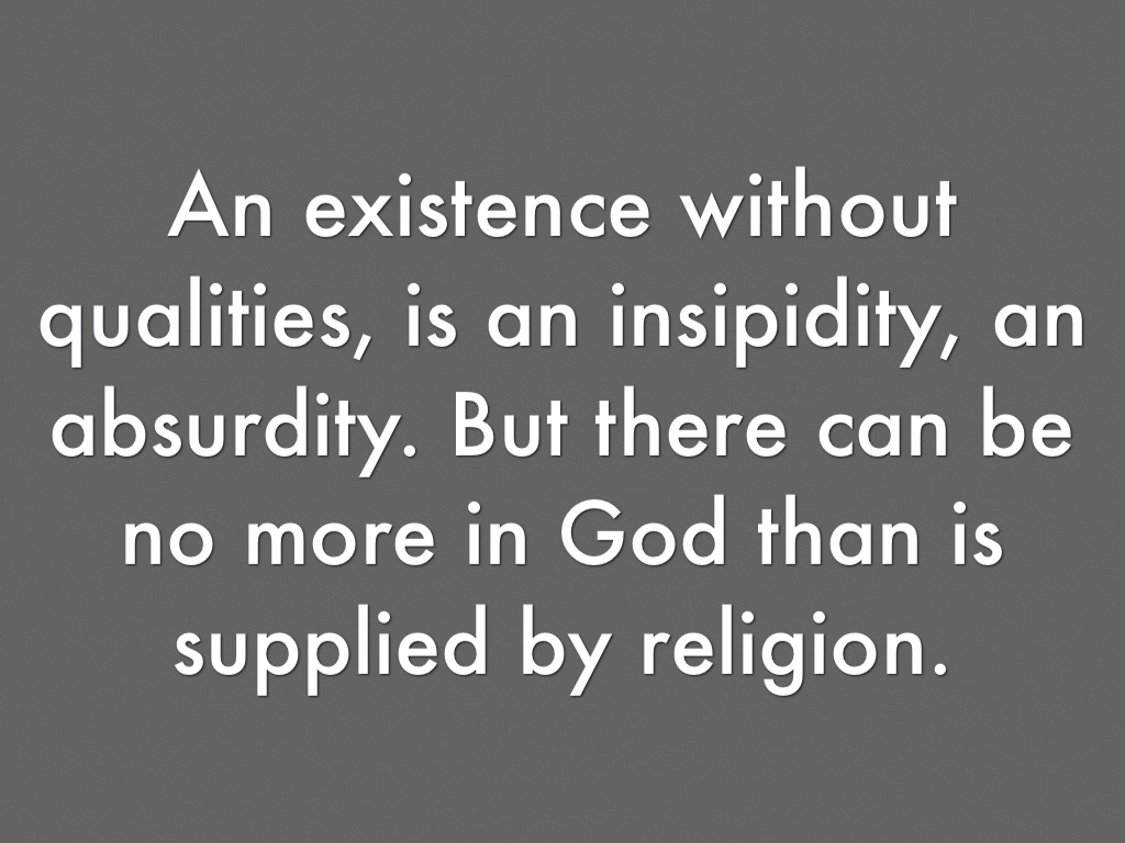 An existence without qualities, is an insipidity, an absurdity. But there can be no more in God than is supplied by religion.