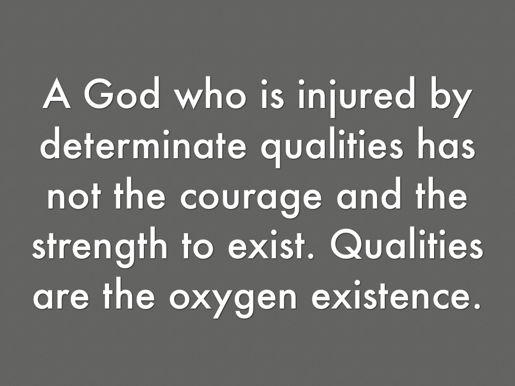 A God who is injured by determinate qualities has not the courage and the strength to exist. Qualities are the oxygen existence.