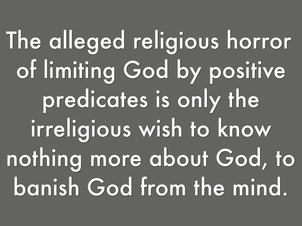 The alleged religious horror of limiting God by positive predicates is only the irreligious wish to know nothing more about God, to banish God from the mind.