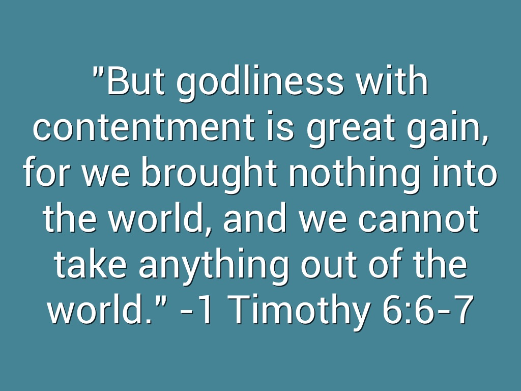 "But godliness with contentment is great gain, for we brought nothing into the world, and we cannot take anything out of the world." -1 Timothy 6:6-7