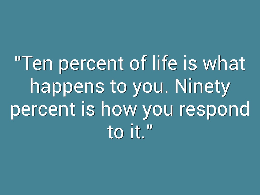 "Ten percent of life is what happens to you. Ninety percent is how you respond to it."